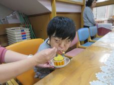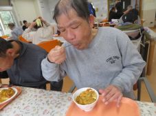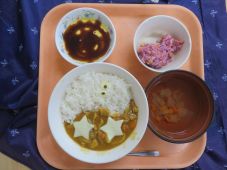昼食は、レオックさん特製のカレーライス、おやつにハロウィン仕様のパンプキンケーキを召し上がりました。