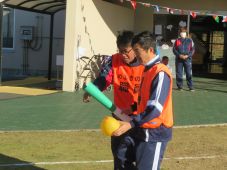 利用者さんの意見を集約する自治会『自治会ひまわりの会』にて利用者さんから希望の有った玉入れやジュースとり競争の競技です