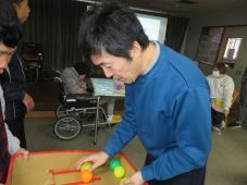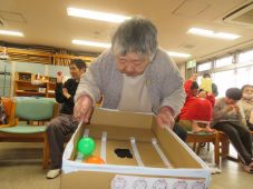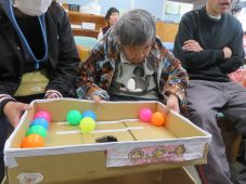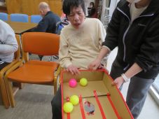 ひな祭りでは、まず『緑のボールを落としてはダメよゲーム』が行なわれました。
