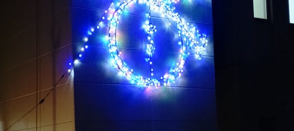 今年のイルミネーションは、エレベーターの外壁に点きました